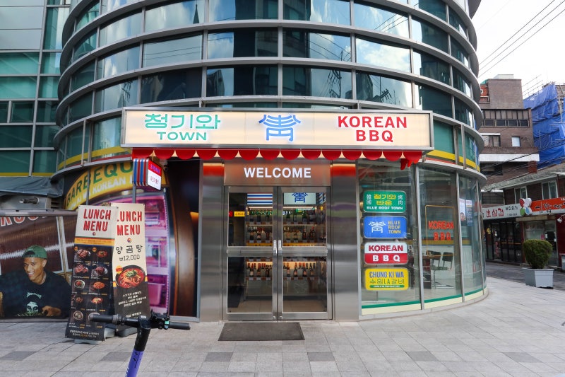 입구가 굉장히 활기차고 마치 외국 한인타운에 있는 가게를 보는 듯한 느낌이 듭니다.