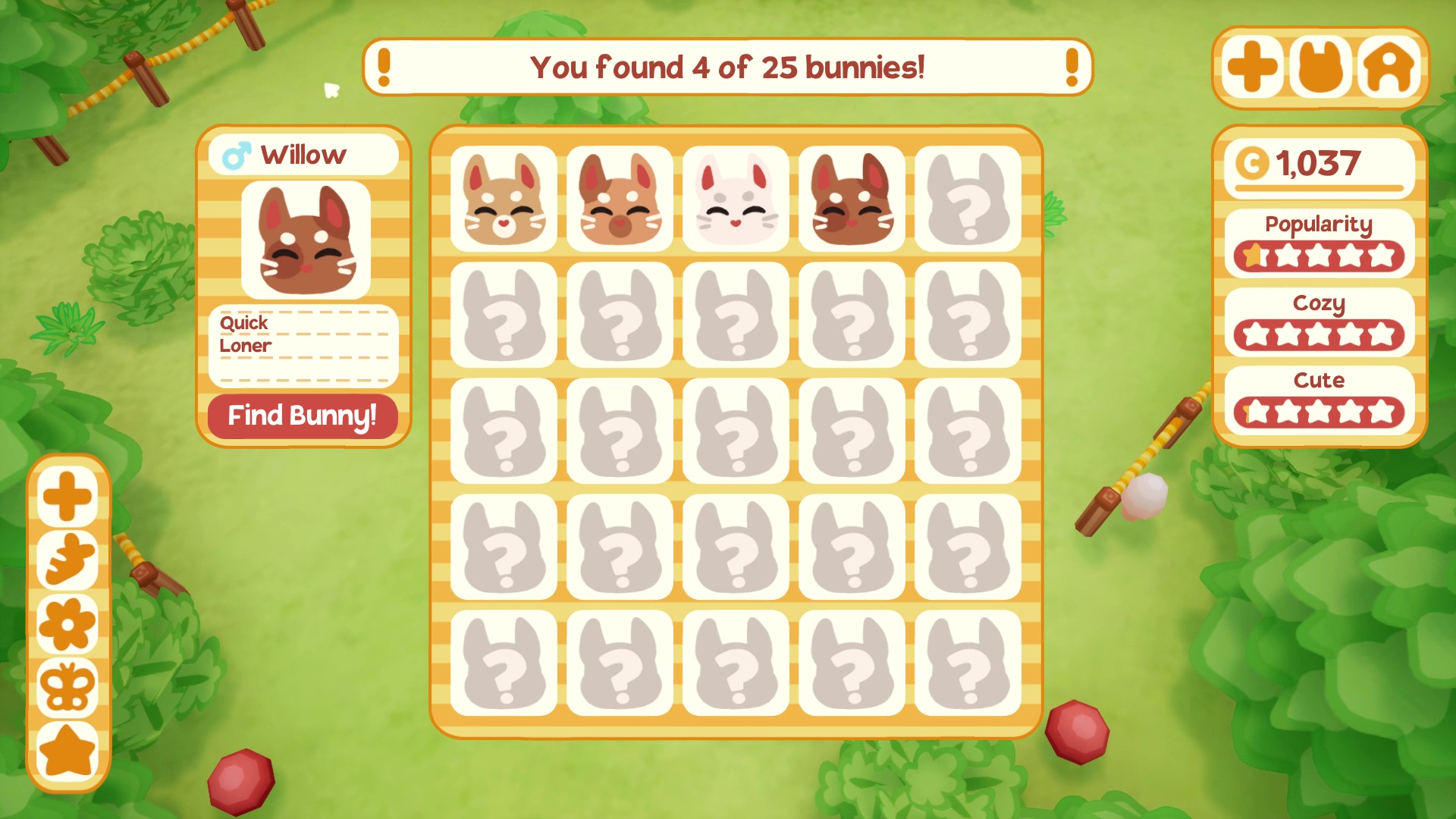 토끼 공원을 꾸미고 토끼를 모으는 게임
