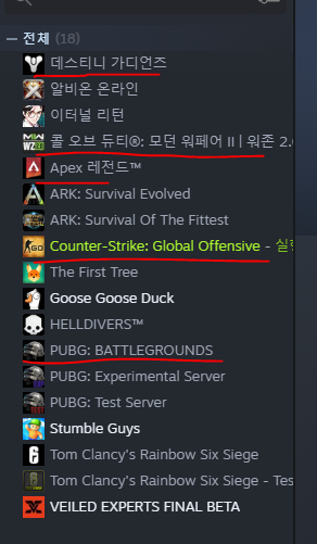 Counter-Strike, Dota 2, PUBG(배틀그라운드), Apex, Destiny(데스티니 가디언즈), Call of Duty: Modern Warfare_6