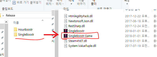 7. 압축해제 후 SingleBoostr → SingleBoostr.Game 실행